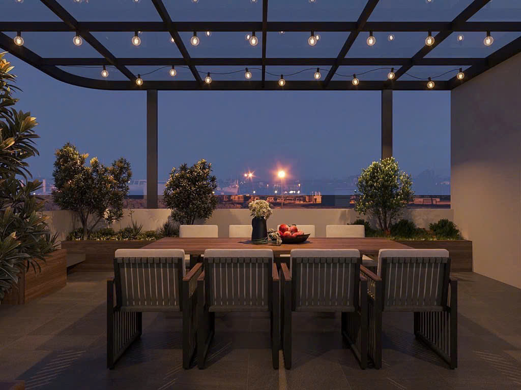 Tầng 8: 3 phòng lớn + sân thượng rộng, có thể thiết kế thêm tiện ích chung hoặc phòng giặt phơi