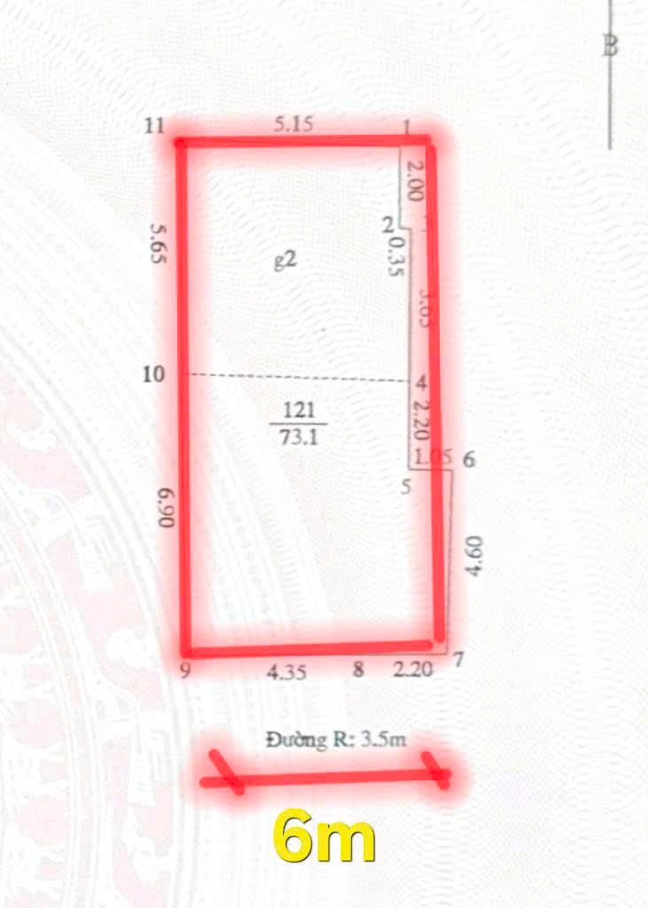 Diện tích sổ đỏ: 74m² – mặt tiền rộng 6m, cực kỳ hiếm trong khu vực.